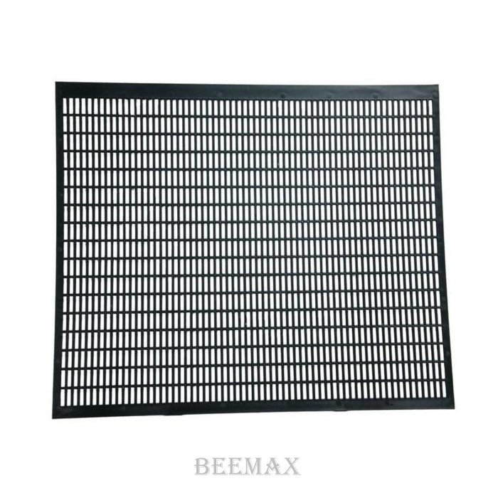 Otvory so zaoblenými hranami nepoškodzujú krídla včiel a zabezpečujú šetrné vedenie včelstva. Plast je pevný, odolný voči vlhkosti a korózii, rozmery 490 × 415 × 2 mm sedia na bežné úle B10. Praktická pomôcka pre začínajúcich aj pokročilých včelárov.